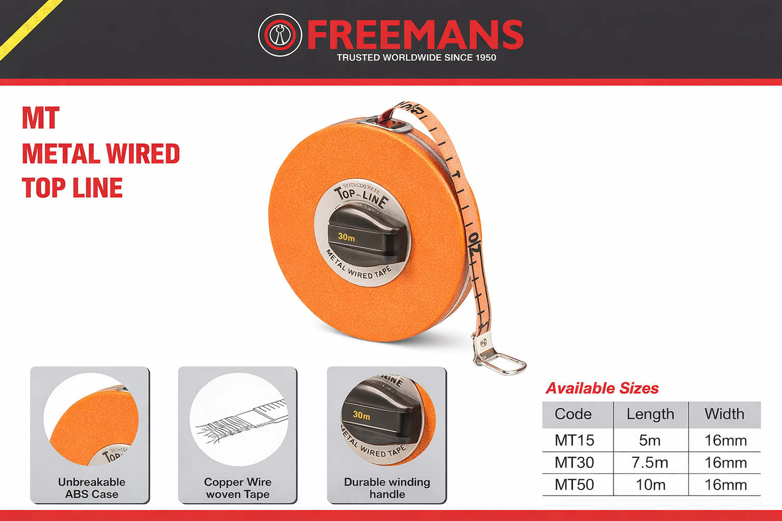 For construction, surveying, civil work, interior projects, and industrial measurement tasks, this measuring tape is perfect. For professional users, Freemans 15m Metal Wired Measuring Tape offers dependability, durability, and accuracy.