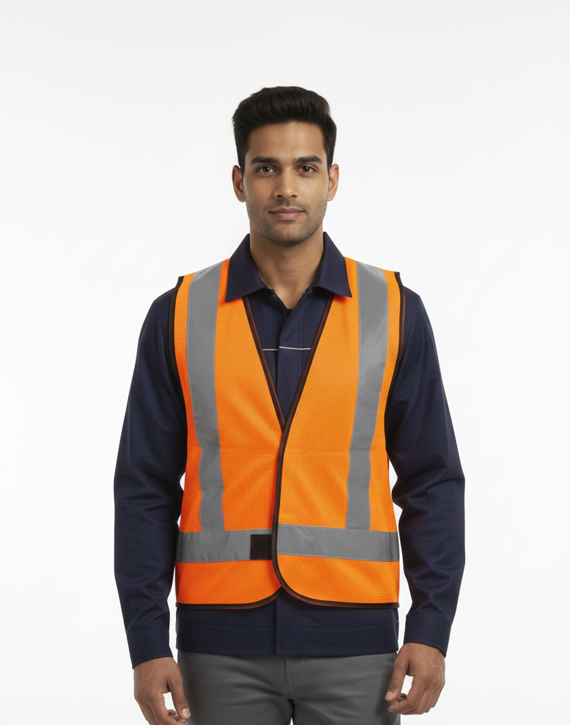 Safety Reflective Jacket is designed to improve worker visibility in low-light and high-traffic environments. It features bright fluorescent fabric along with high-quality reflective strips that enhance safety during both day and night operations.